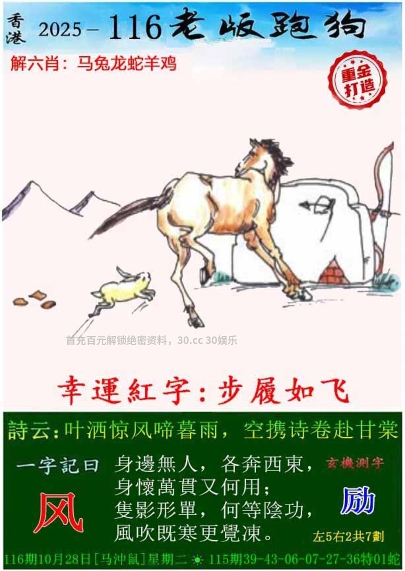 111期:今期猪牛狗看定,特碼旺小和单出开马12准